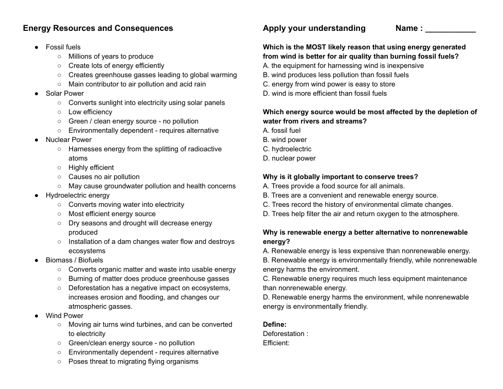Energy Resources and Consequences