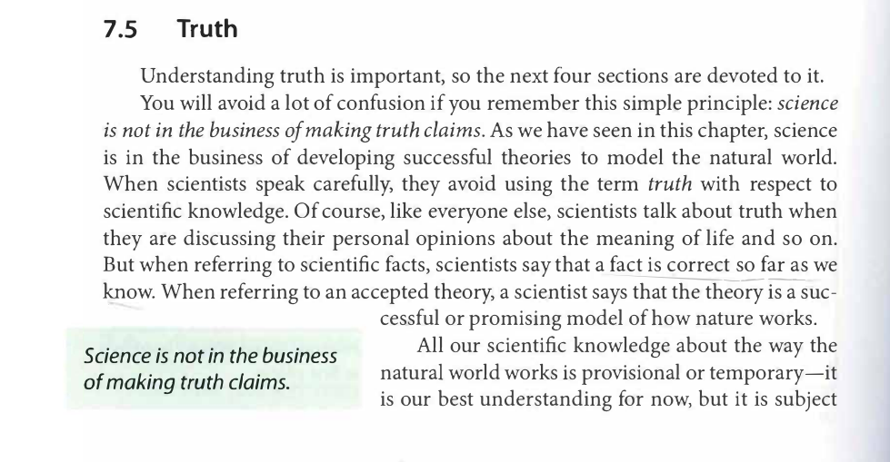 When scientists are speaking carefully about scientific facts, what do they say instead of "it is true"