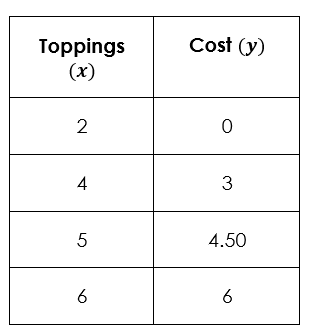 Is there a proportional relationship between number of toppings and the total cost? Graph, then explain using evidence from your graph.