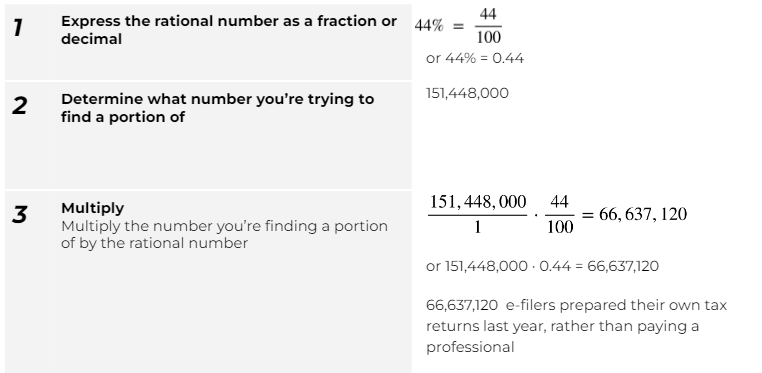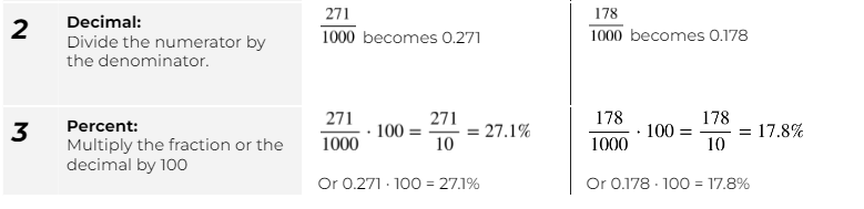 - Express rational numbers as a fraction, decimal, and percent, and convert between the three