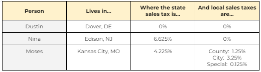 - Explain how sales tax is calculated, and how it differs between states and local areas