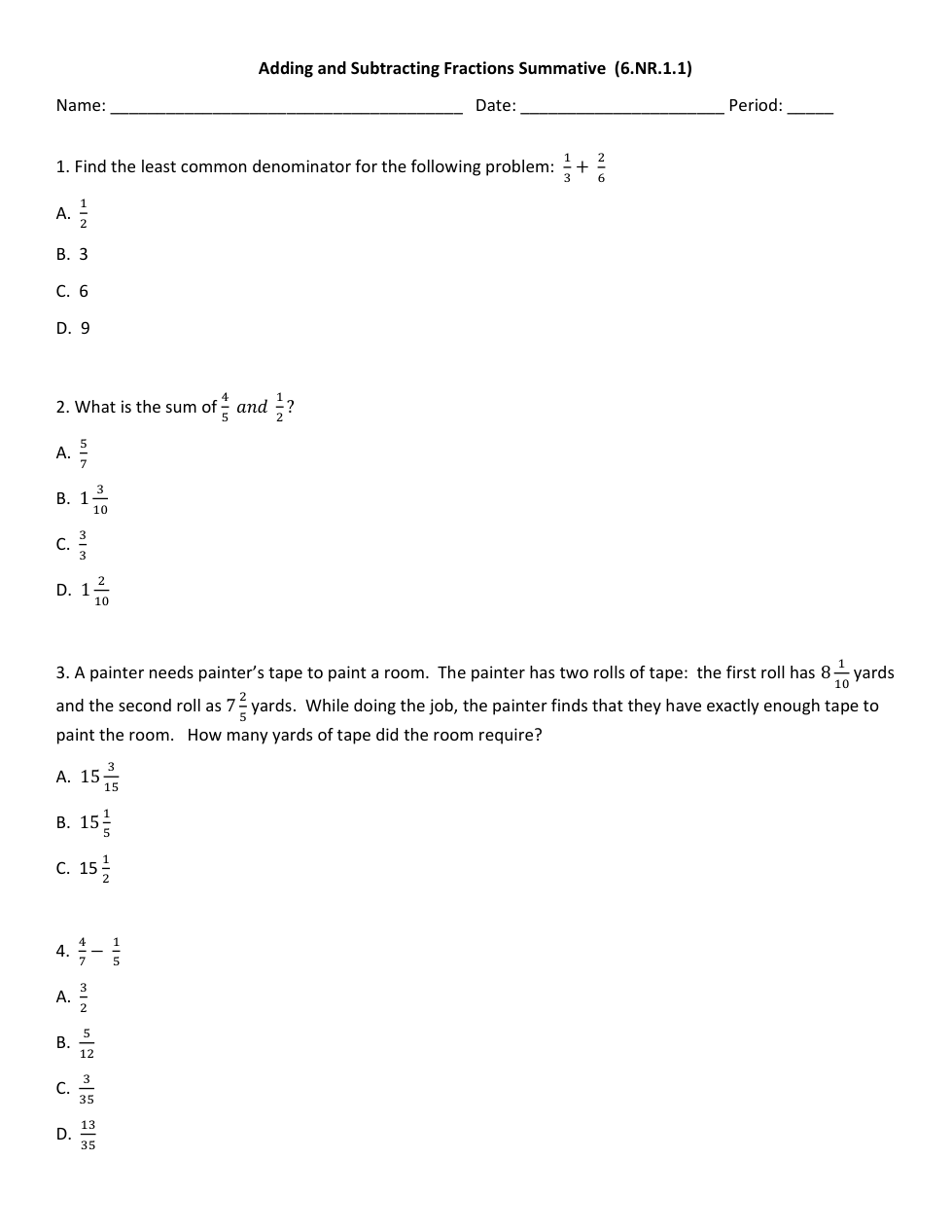 Math 6 Unit 2 Part 1 Summative