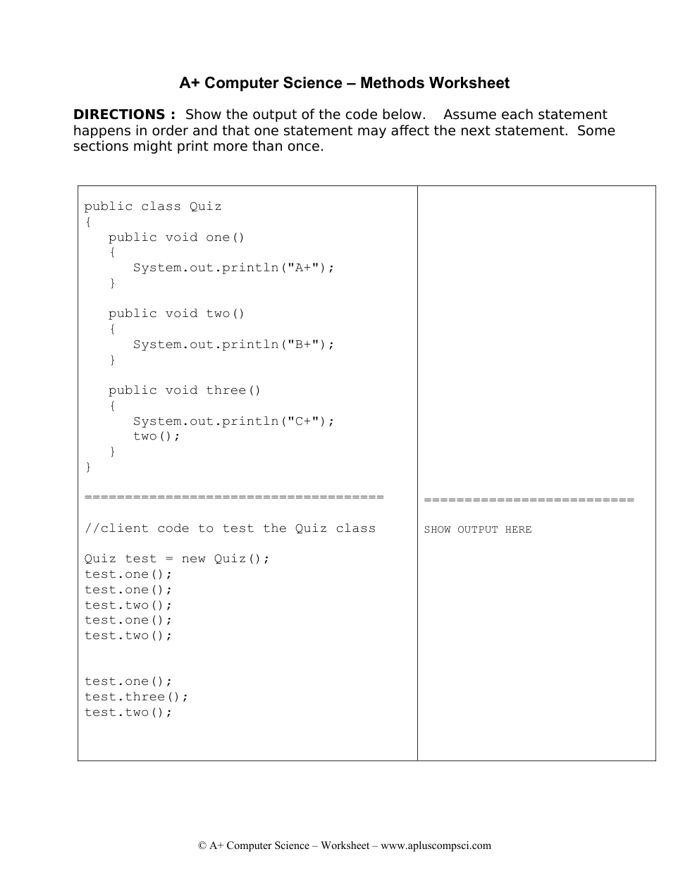 Show Output here. Write the outputs in a single line with commons separating lines.