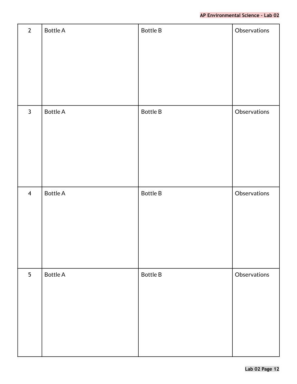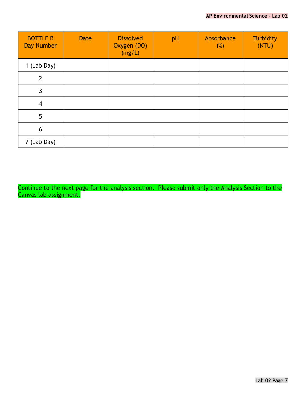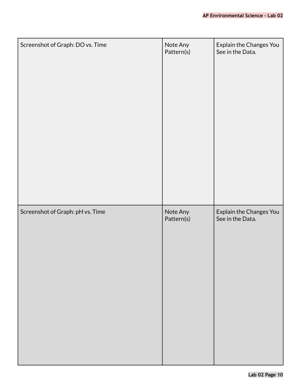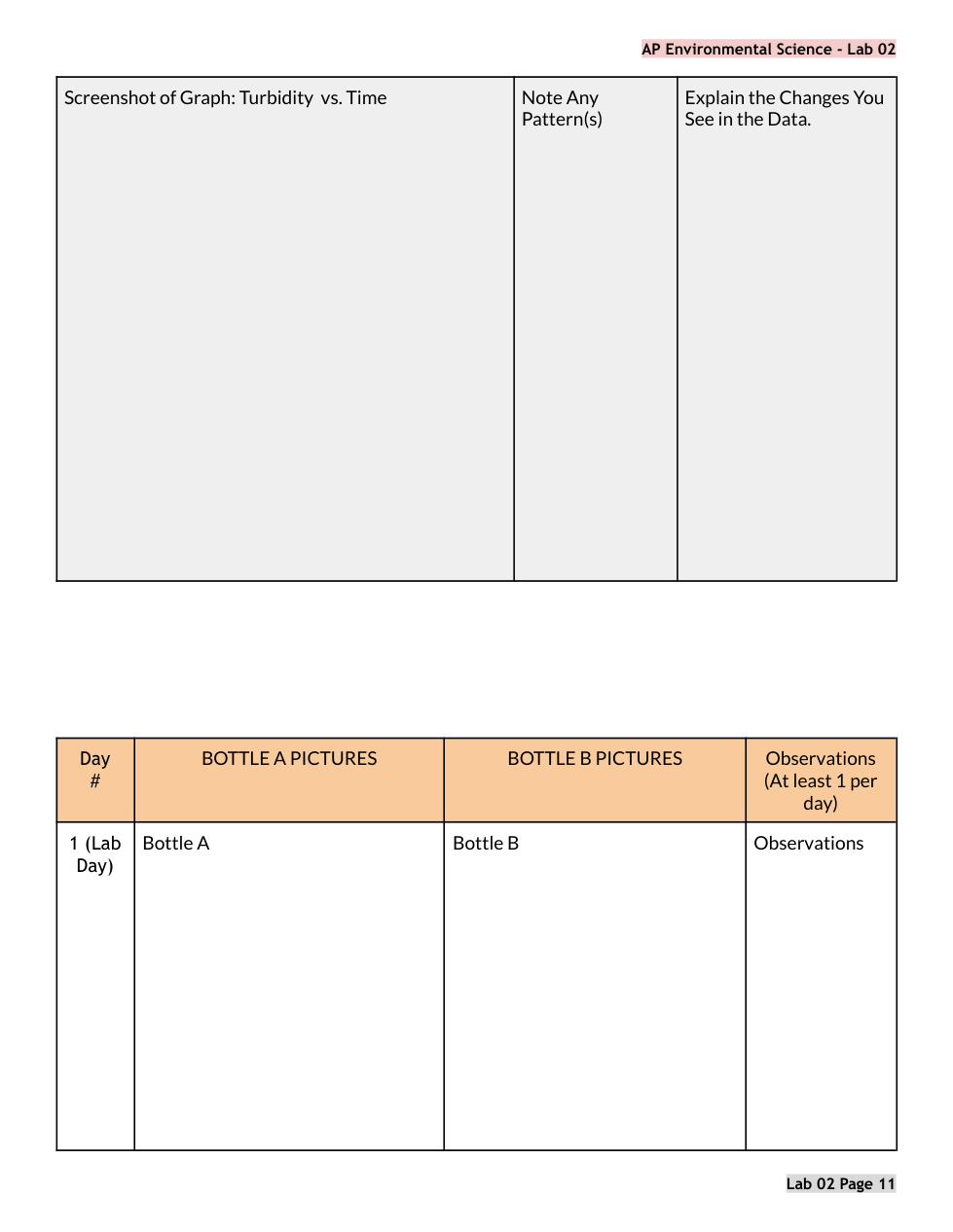 APES Lab 02 PRE LAB Algae Cultures Primary Production