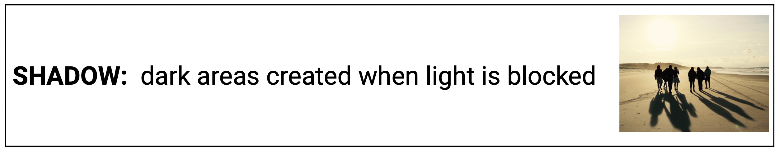 Sentence starter: A shadow looks bigger than we are because ___________________________