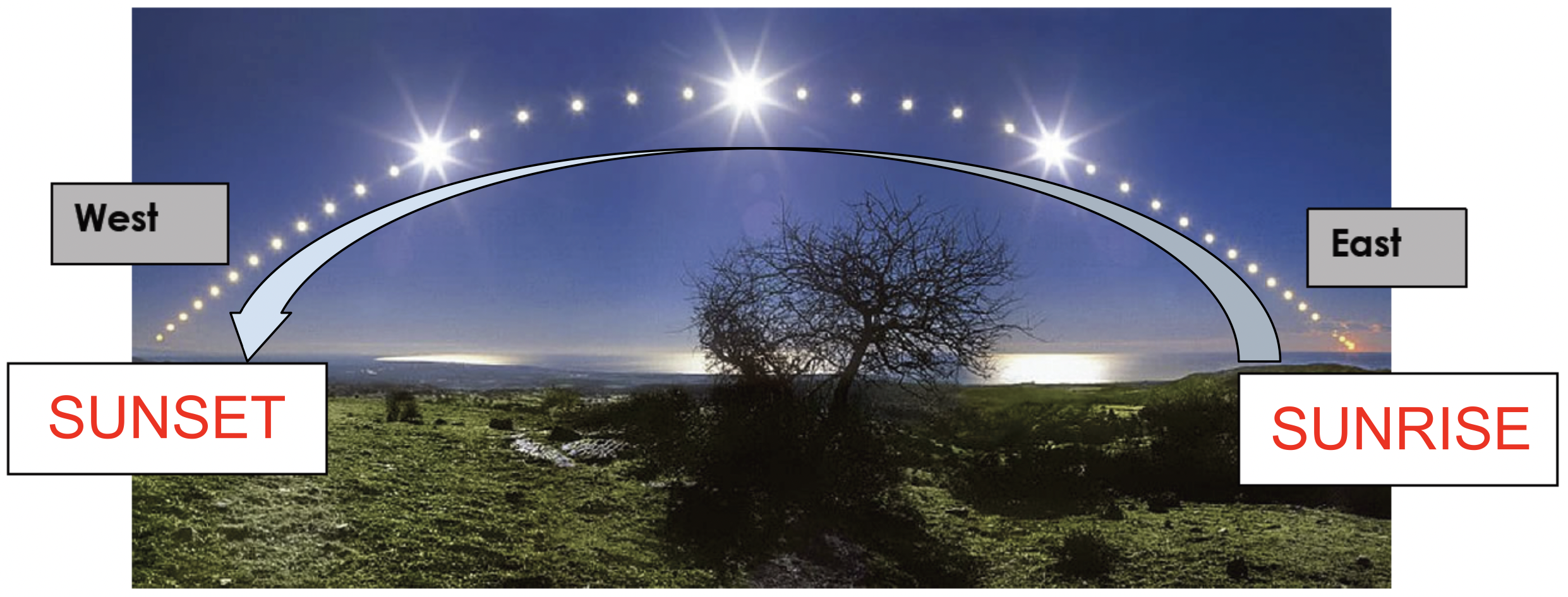 We often say that the sun moves through the sky and “rises” and “sets”, but it only looks like the sun is moving. We know that the sun and other stars DO NOT MOVE.