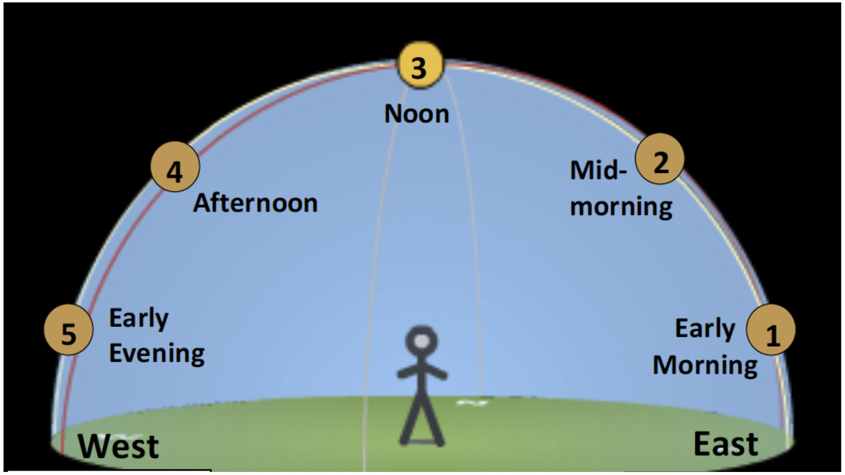 Knowing about what direction the sun rises and sets in helps us understand shadows. The sun rises in the EAST and sets in the WEST.