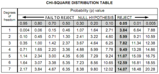 Based on the chi square value, which of the following is the corresponding p-value?