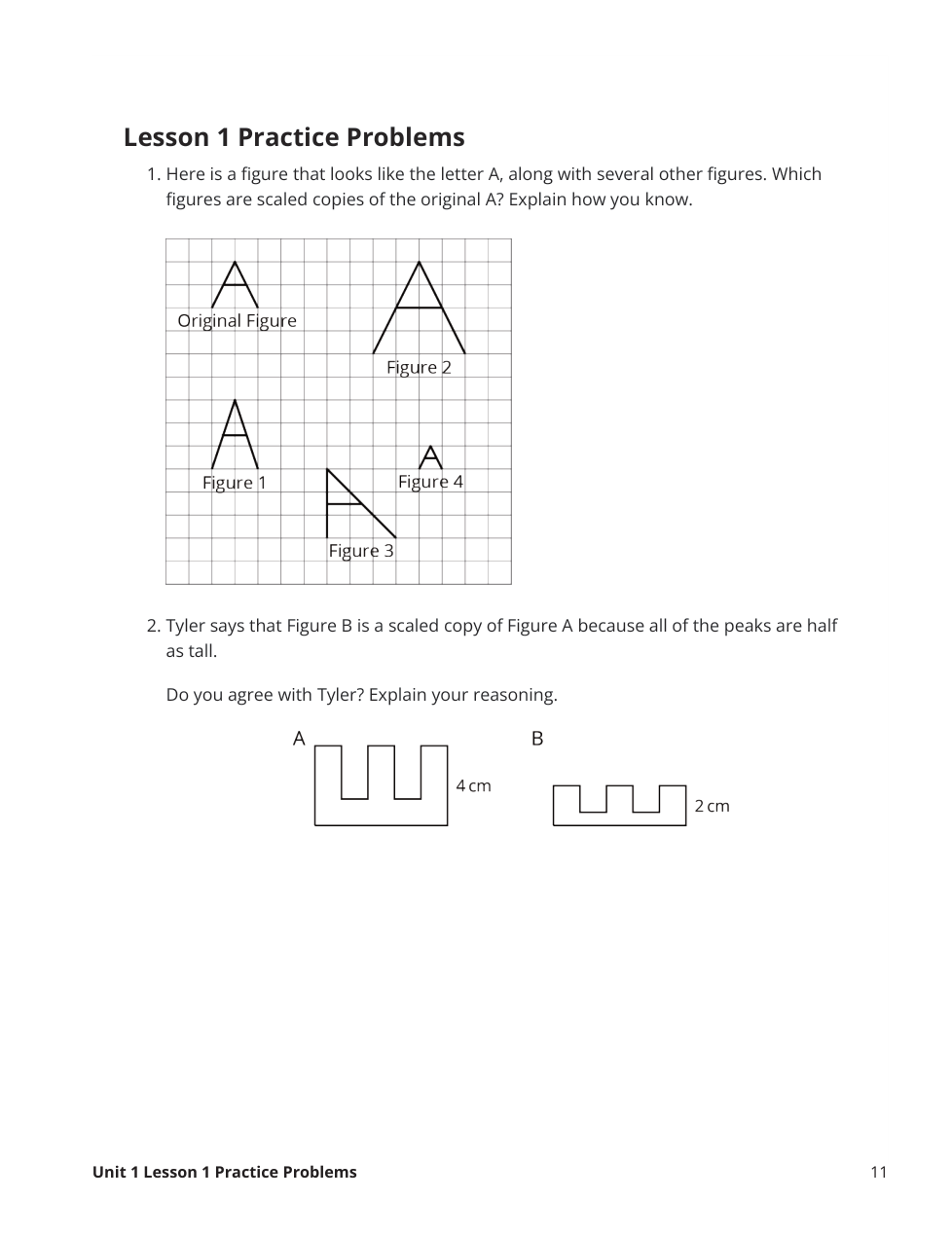 Choose all figures that are scale copies. Explain your reasoning in your workbook. We will check it in class.
