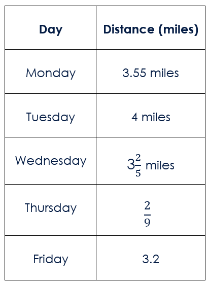 How is Wednesday’s distance written as a decimal? Show your work.