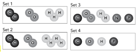 A store sells a variety of sets for building molecular models. The sets are described by the diagram below.