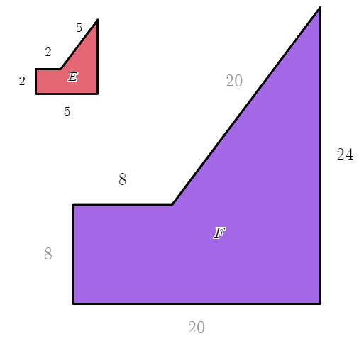 Find the missing length so the side lengths of figure F are proportional (a scaled copy) to the side lengths of figure E.