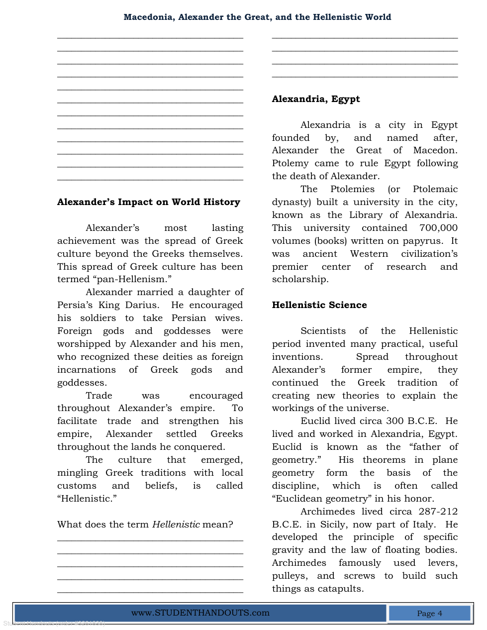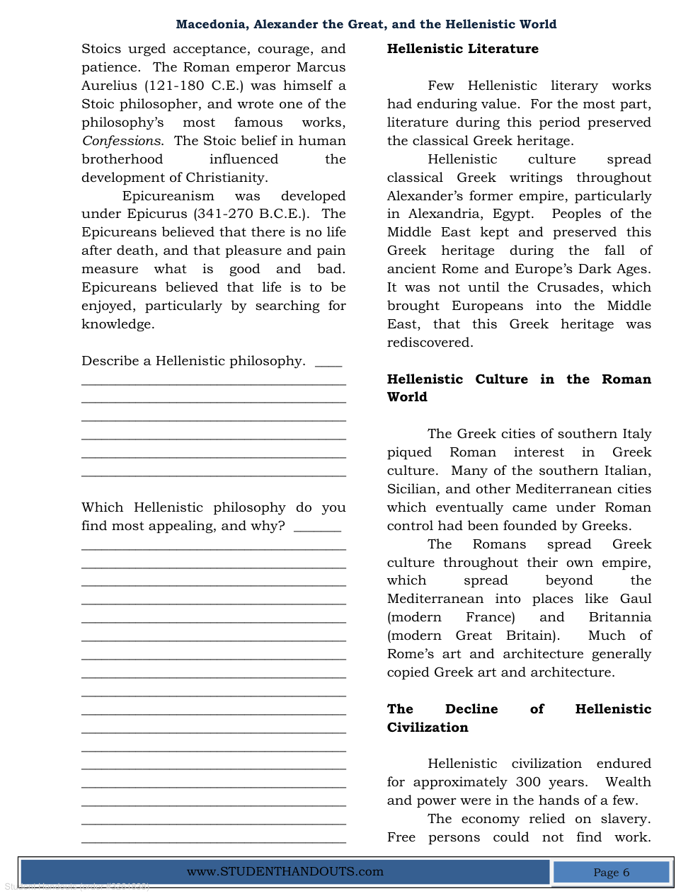 Macedonia, Alexander the Great, and the Hellinistic World Workbook