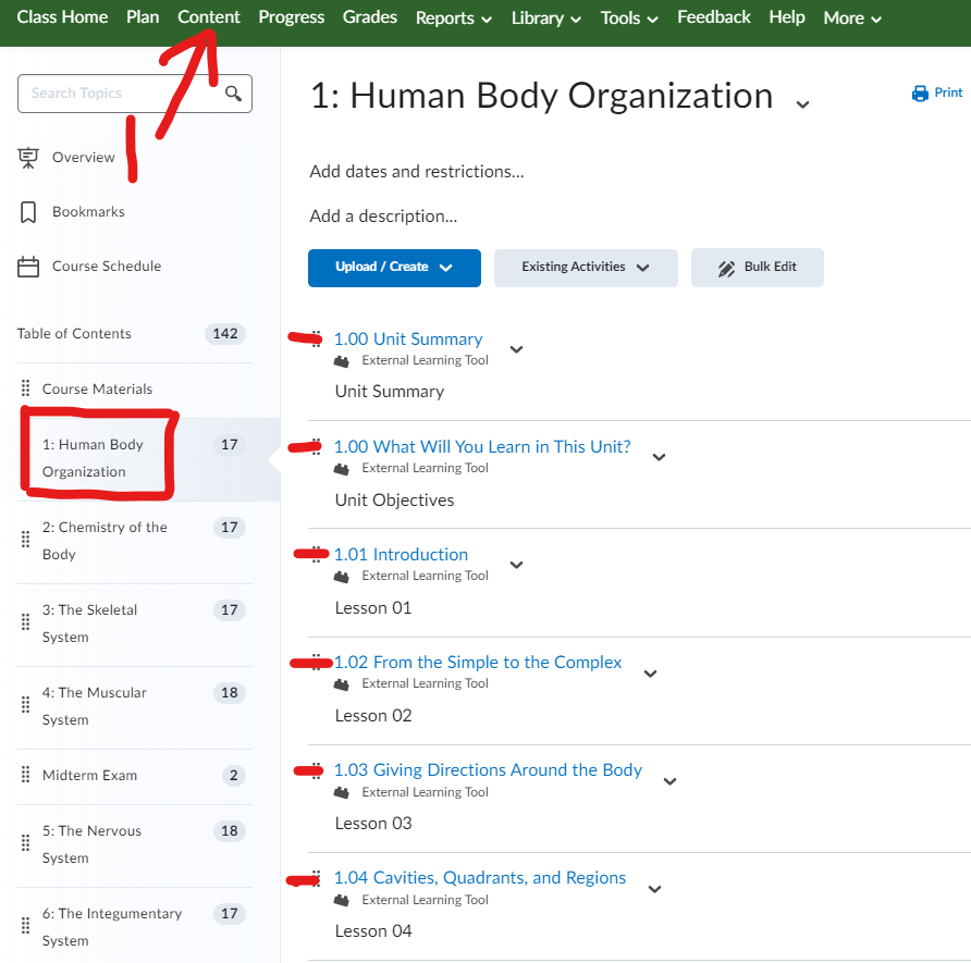 In Unit 1: Human Body Organization, read: