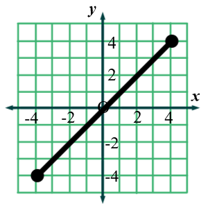 Identify the domain in the following graph. List the numbers with brackets {}, commas and no spaces.