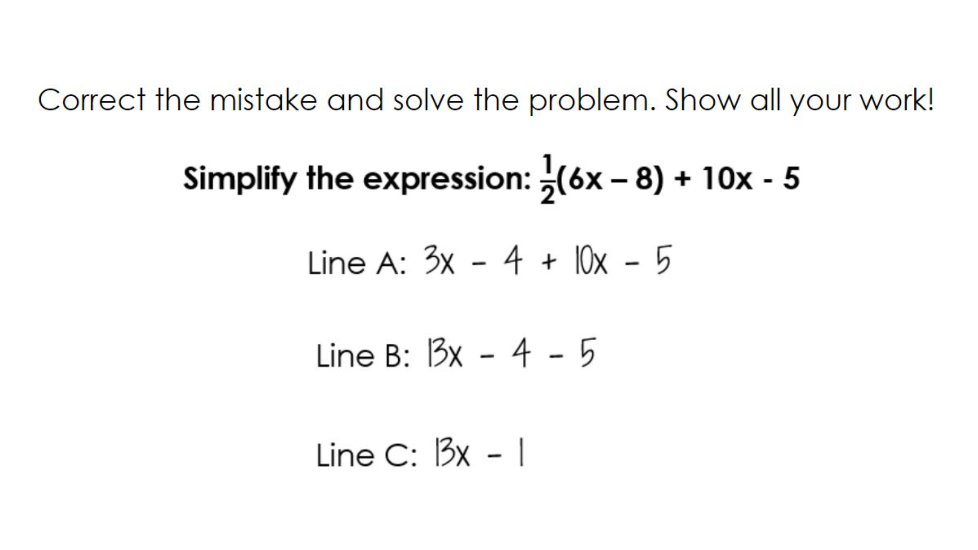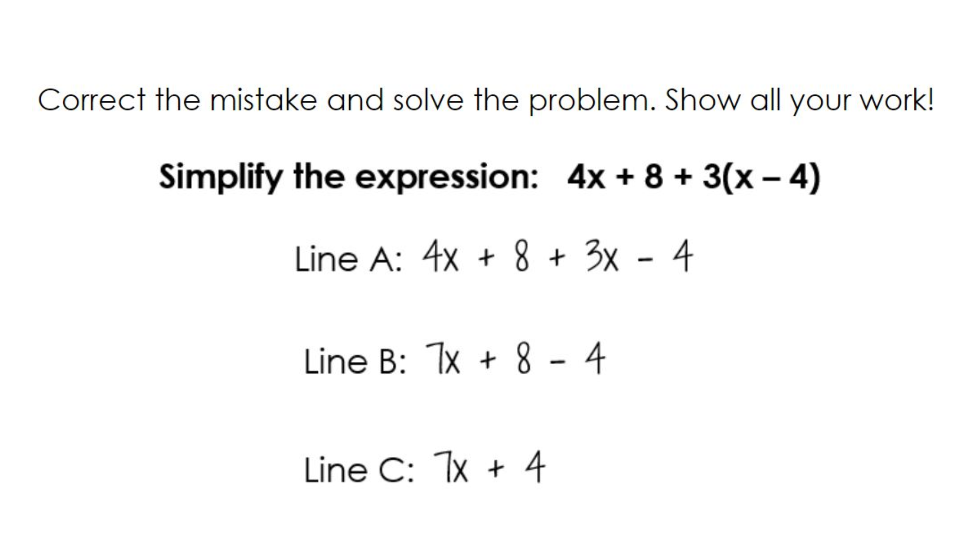 What is the correct answer? Put variables in alphabetical order first in your answer. No spaces.Circle the mistake in the show work.