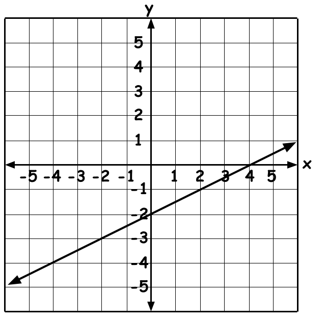 Which line appears to have an x-intercept of 4 and a y-intercept of -2?