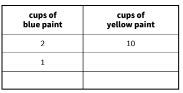 What if we had 20 cups of yellow paint, how many cups of blue paint would we need to keep our same shade of green?