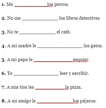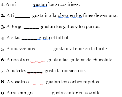 Gustar - Fill in the correct form of gustar (gusta or gustan).