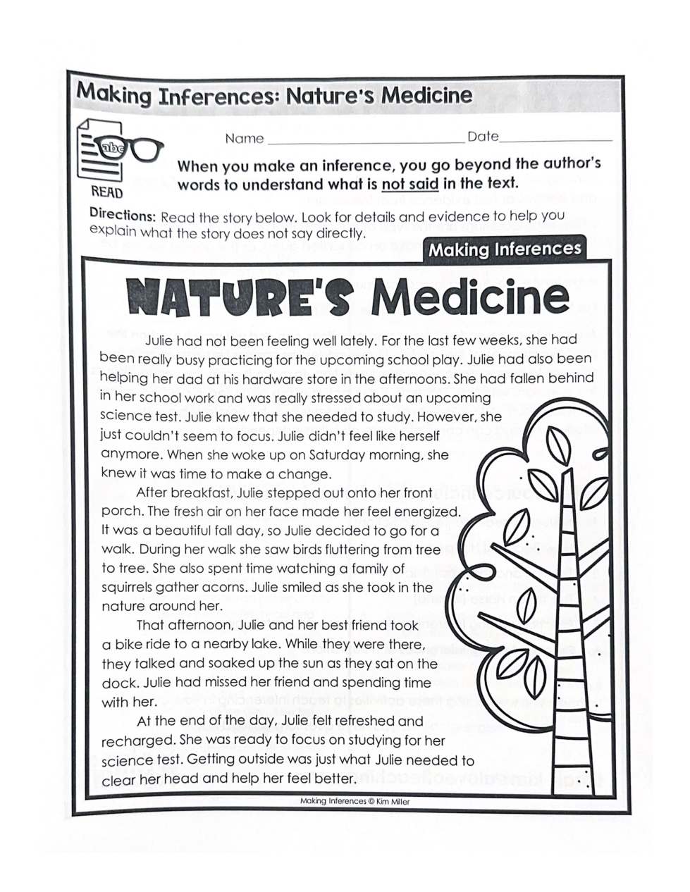 What information would you need to support the following inference? Spending time outside helped Julie make a better grade on her science test.