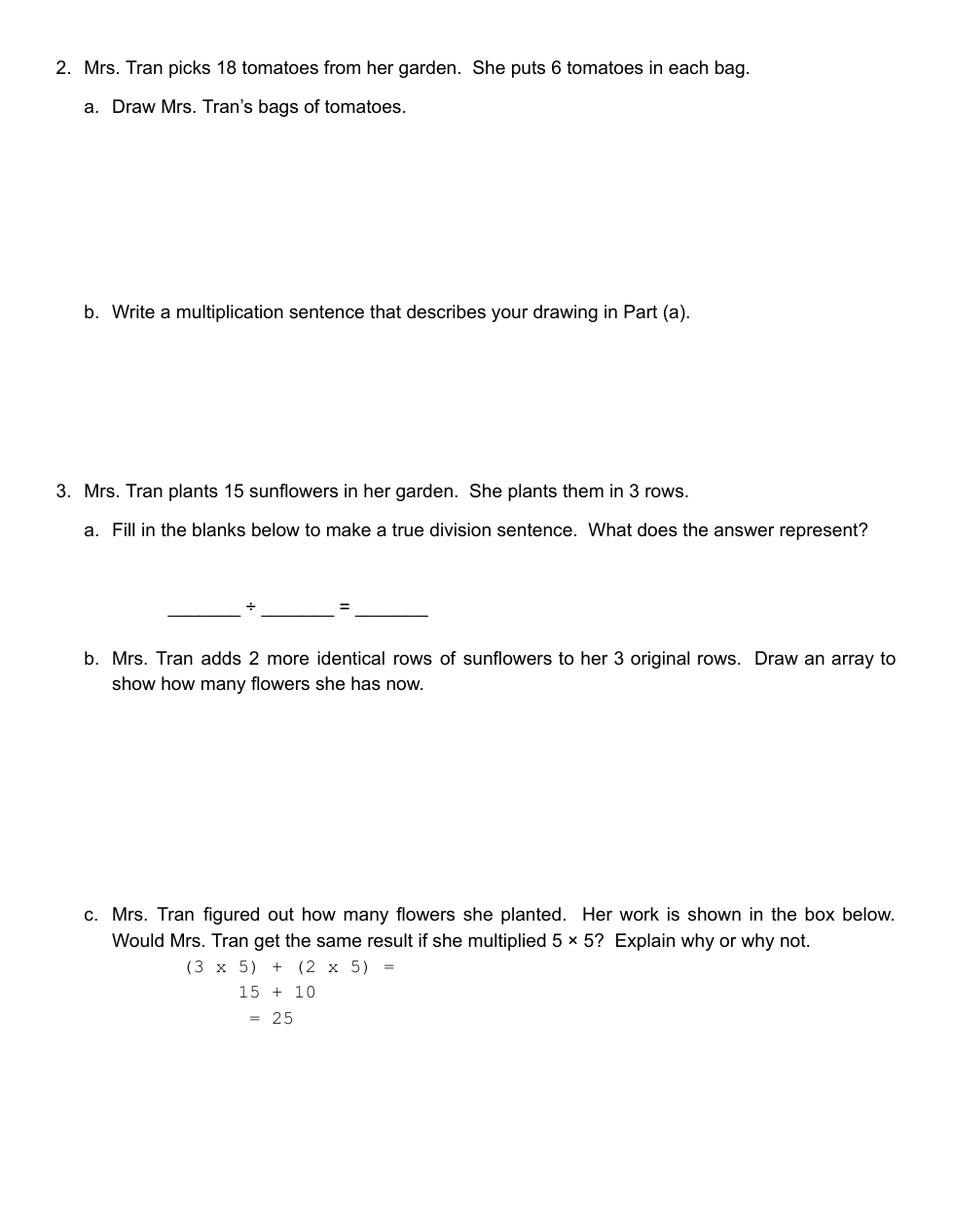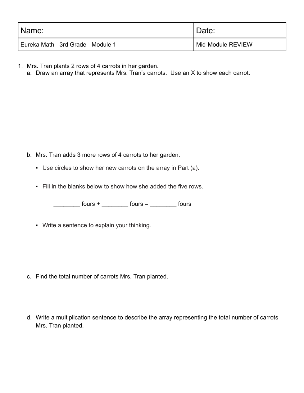 Draw an array that represents Mrs. Tran’s carrots. Use an X to show each carrot.