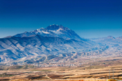 What major physical feature lies between the waters of the Caspian Sea and the Persian Gulf?