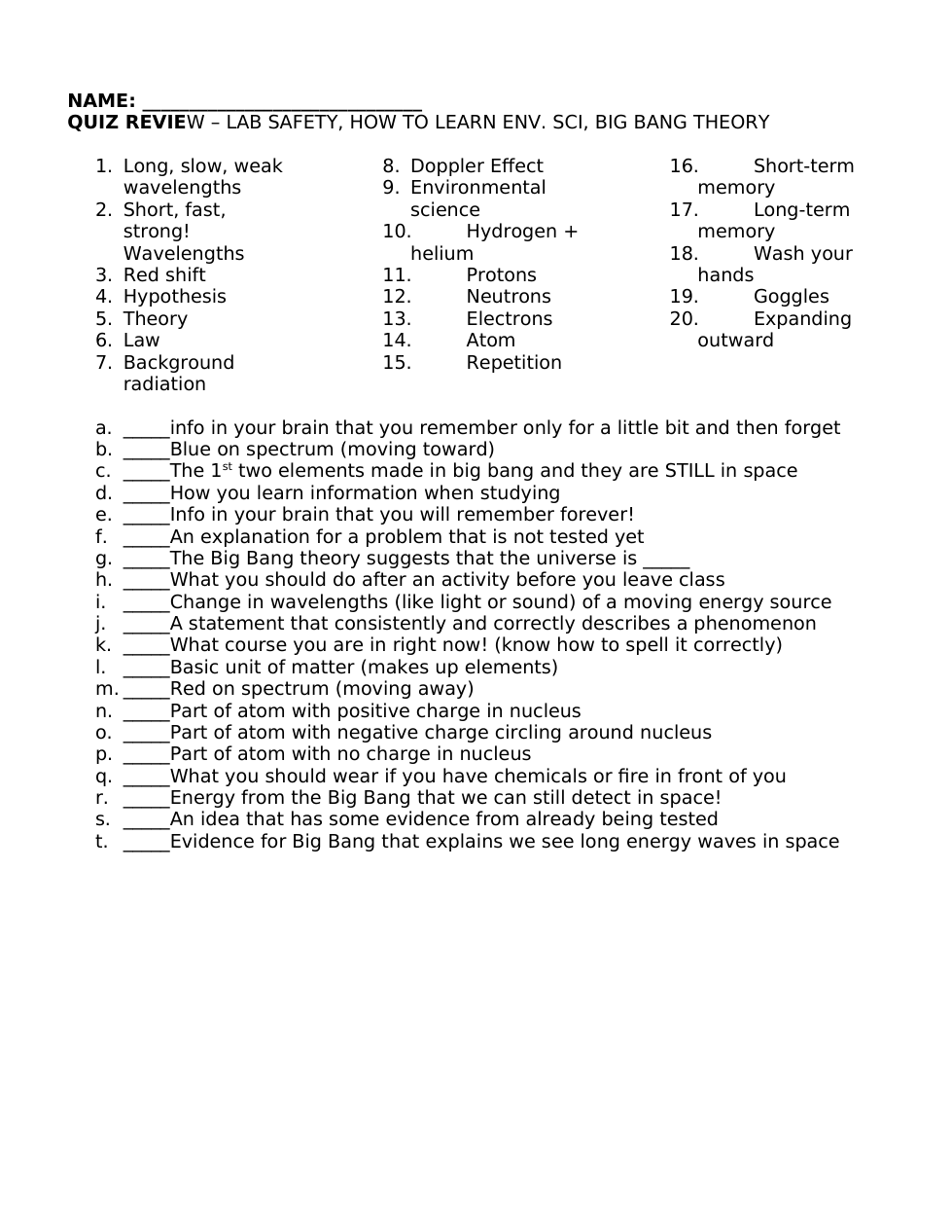 (Read the pdf where the #1 circle is.) Info in your brain that you remember only for a little bit and then forget