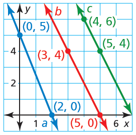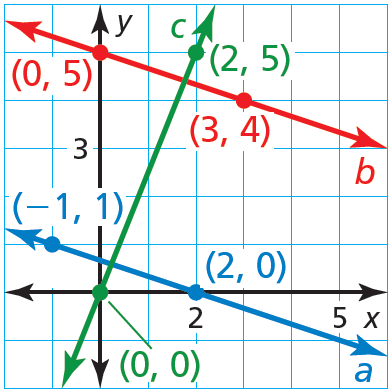 Line c passes through (3, 8.5) and (6, 10.5).