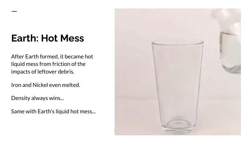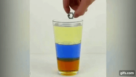 Put the items in order of:most dense (at the bottom) to least dense (at the top).