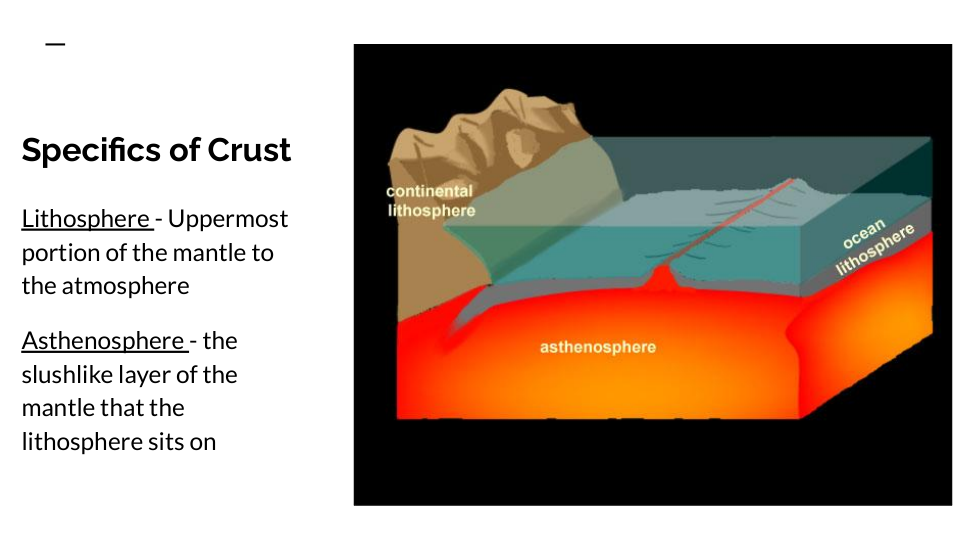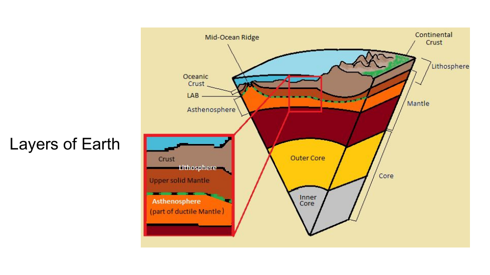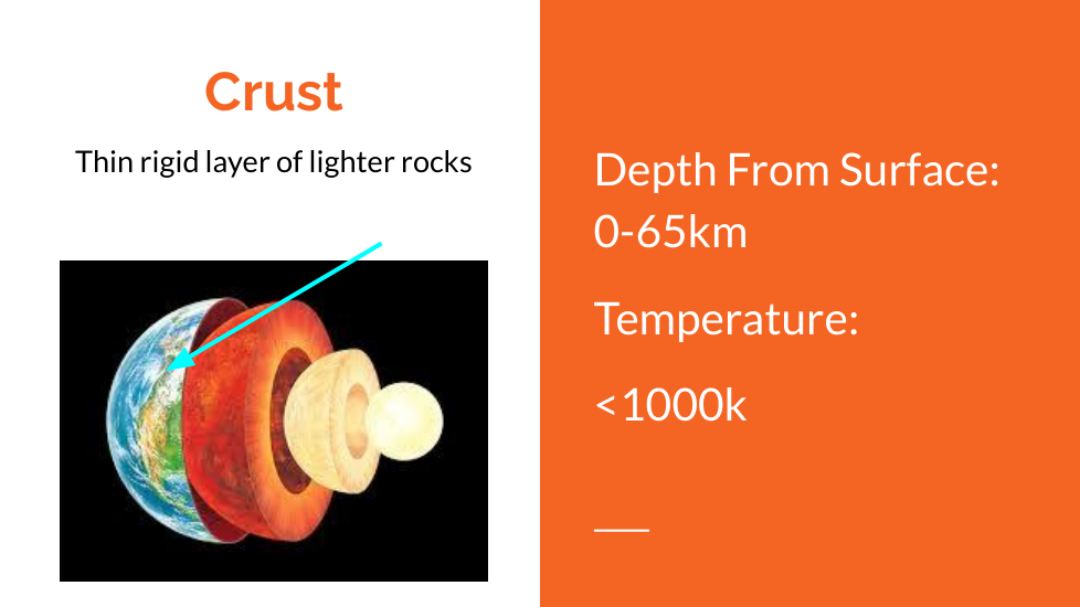 Put the layers of the Earth in order. (As if you were drilling to the center, so from the surface to the middle of the Earth)