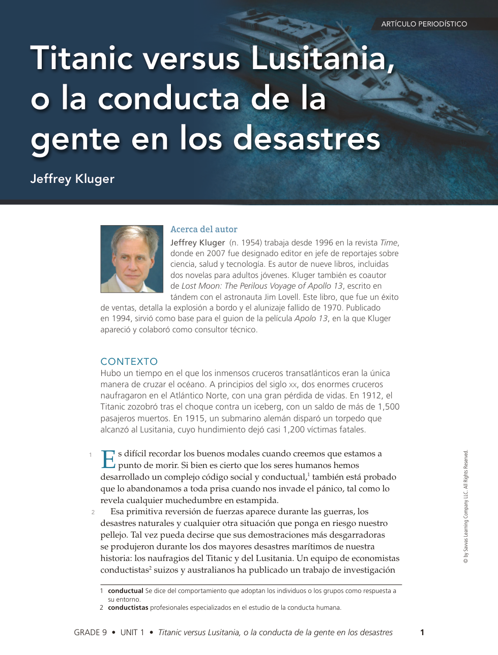 SP Titanic vs. Lusitania: How People Behave in a Disaster By Jeffrey Kluger