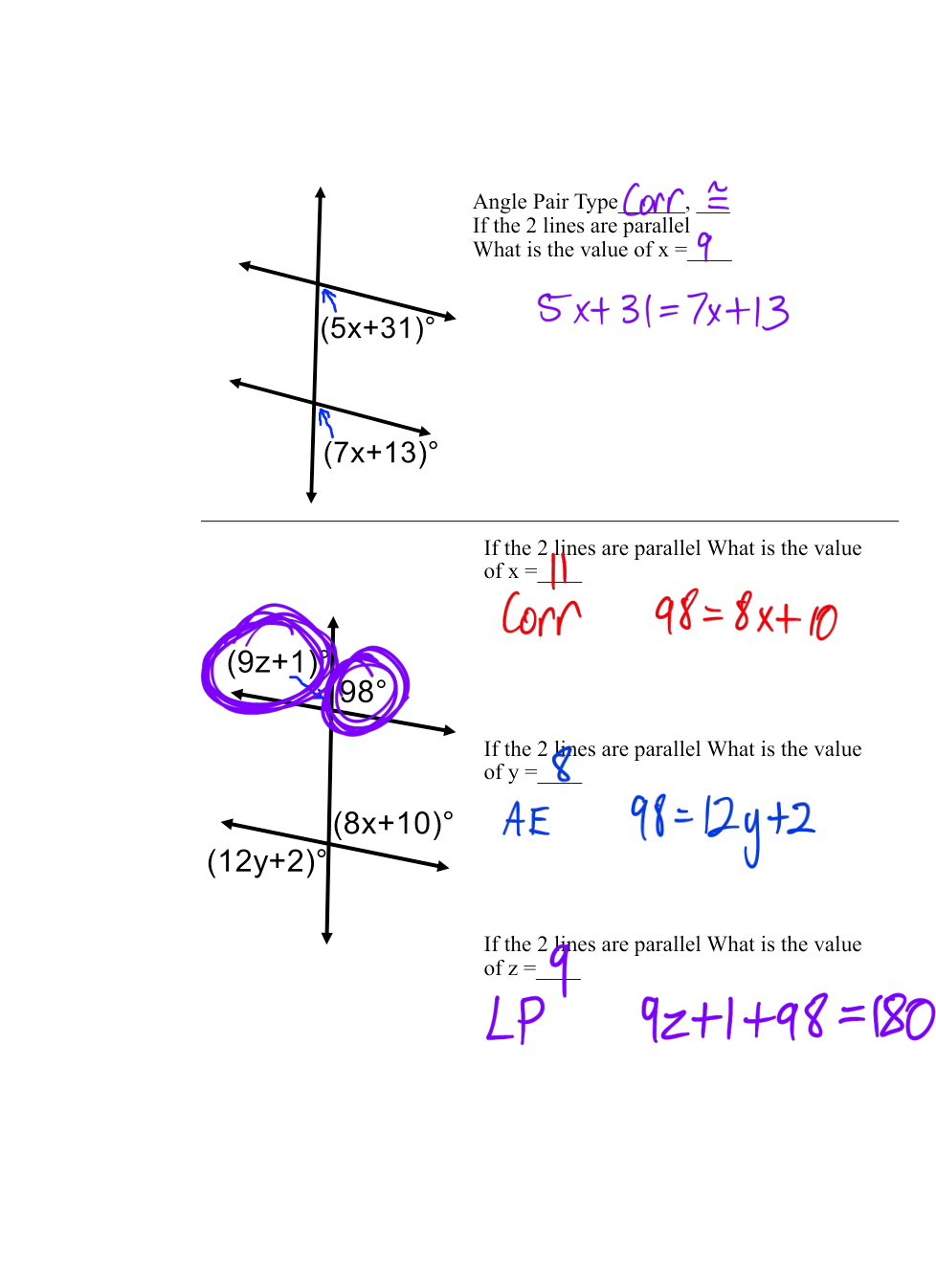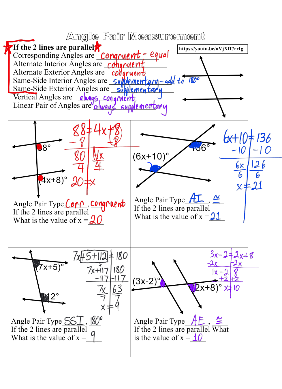 What is true of Alternate Interior angles of parallel lines? Hint: look at the notes page that you have. It is also on the top page of the 2nd page of this formative.