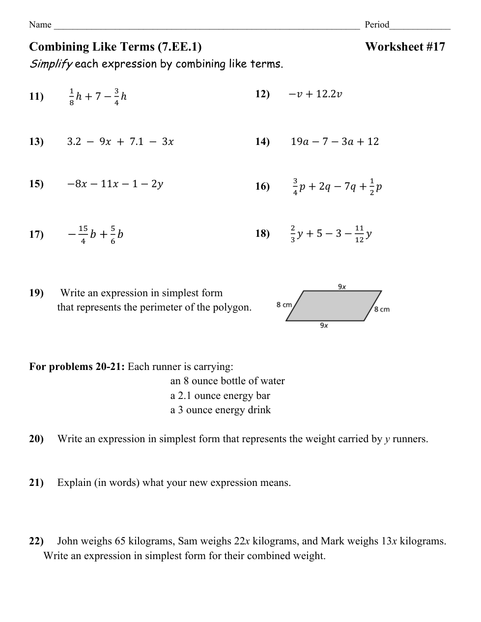 734LRIS WS#17 (Pink) Identifying and Combining Like Terms