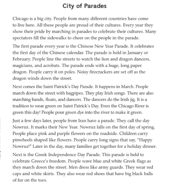 Part A: Why does the author talk about the Columbus Day Parade at the end of the article?