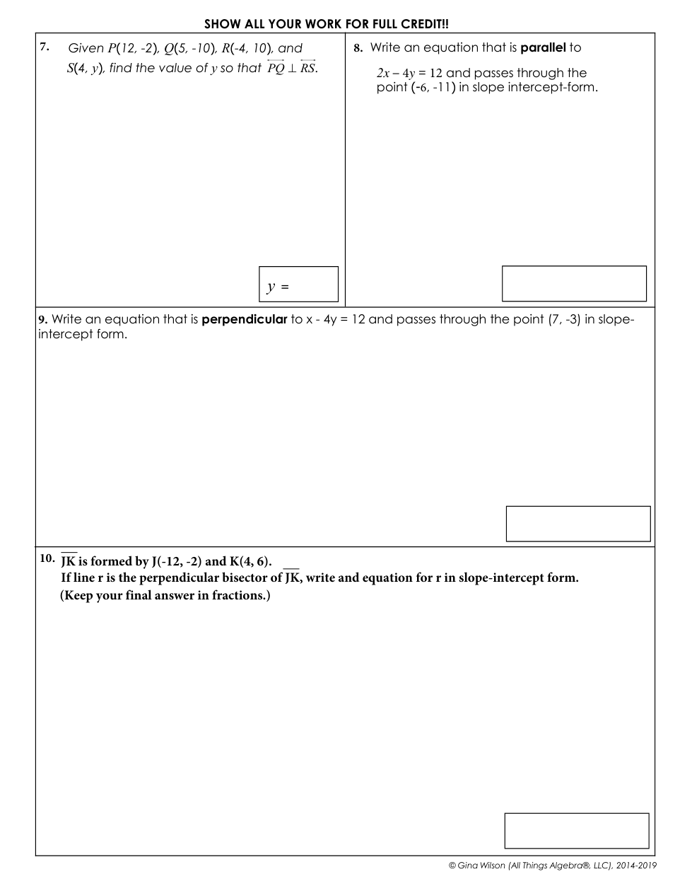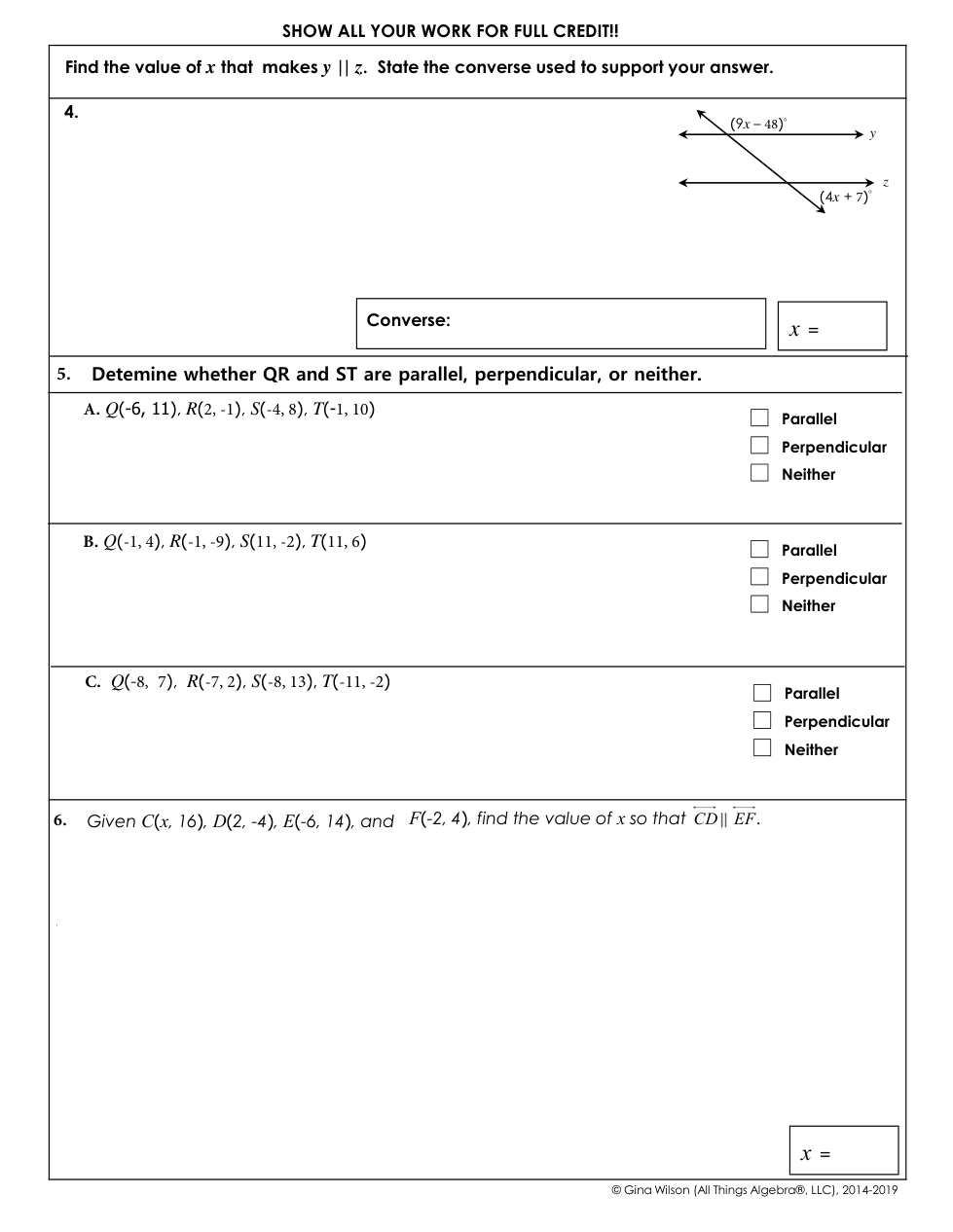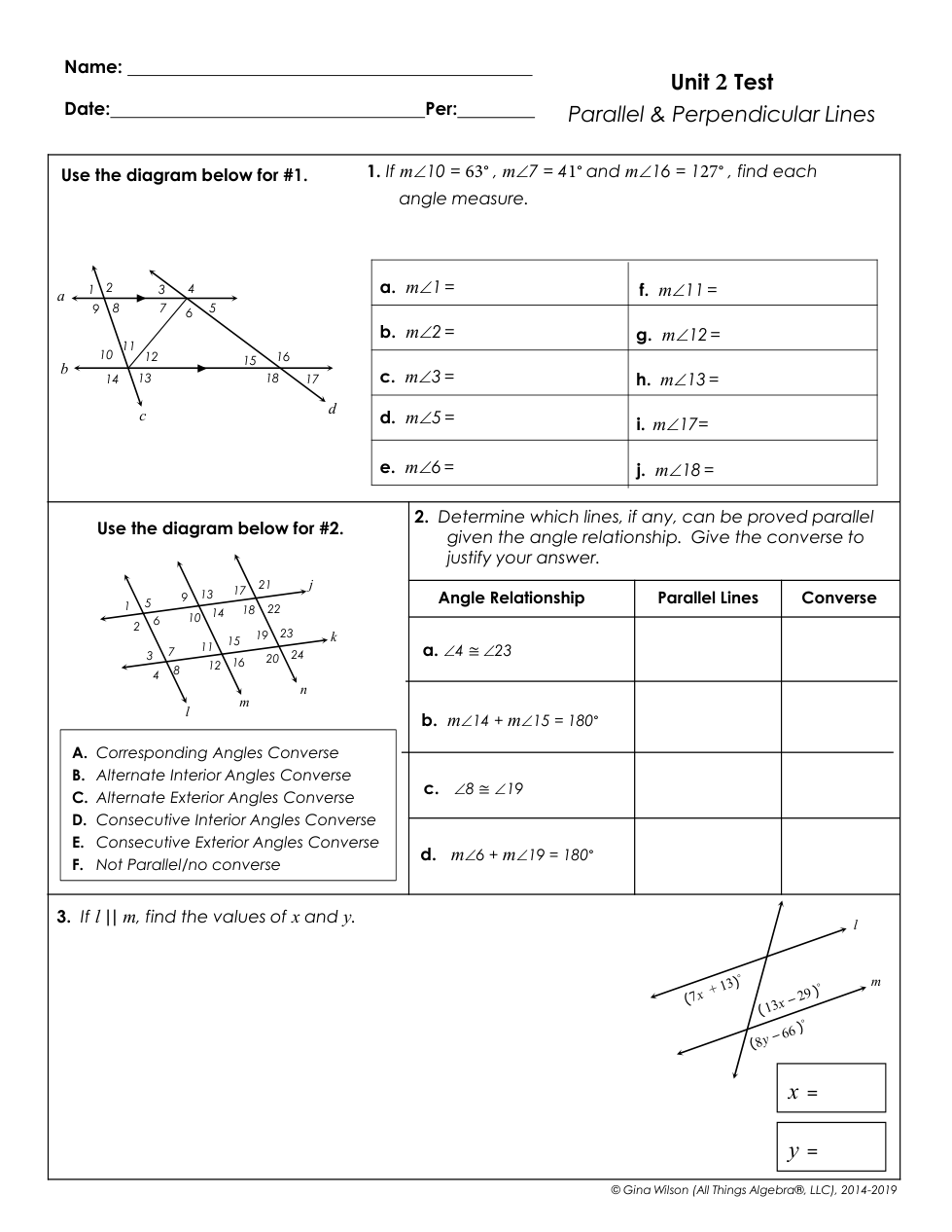 TEST: Unit 2 Parallel & Perpendicular Lines
