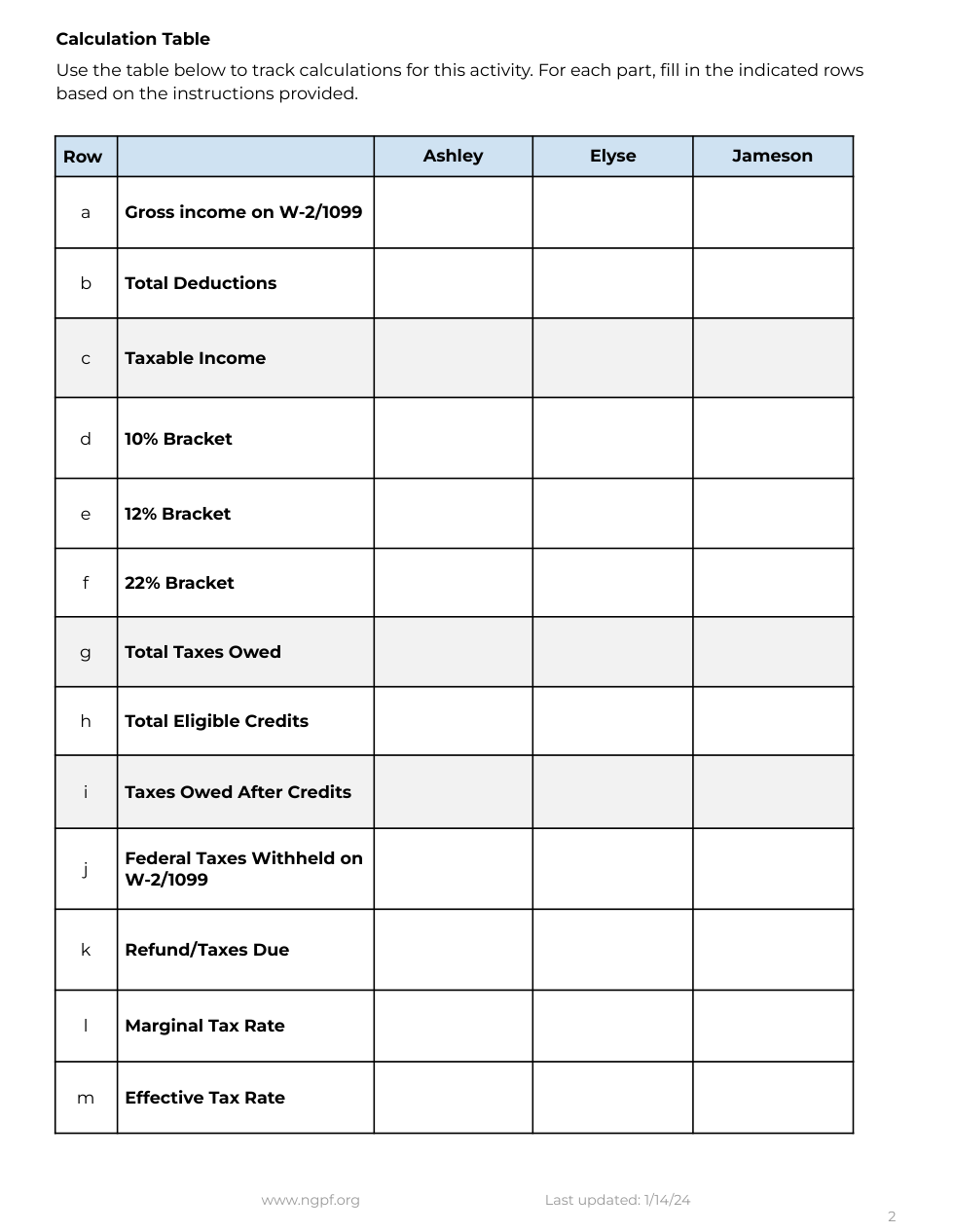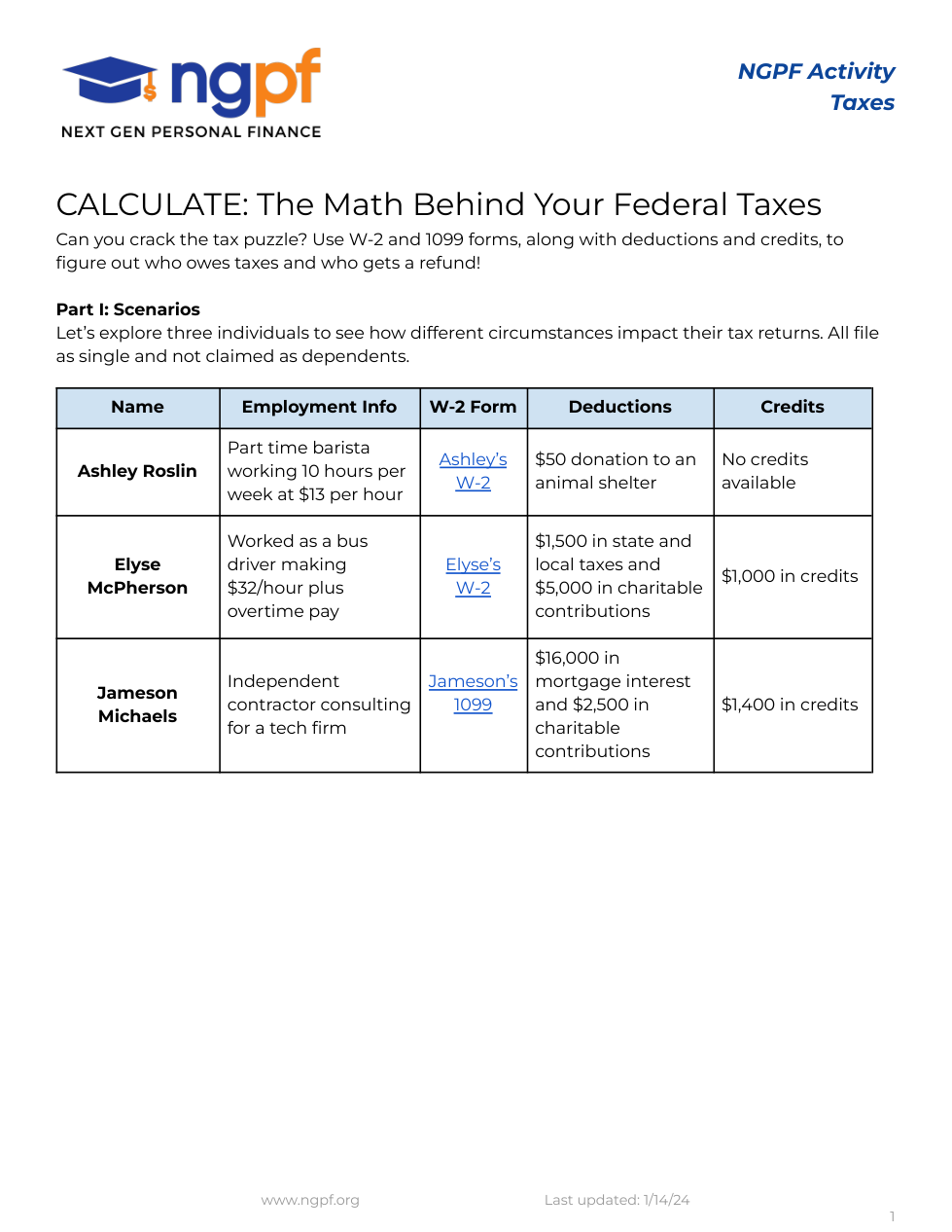 Follow your teacher’s instructions to complete the Calculate: Your Federal Taxes activity.