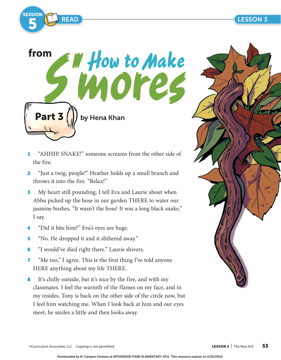 Why does the camp counselor say "Just a twig, people!" in paragraph 2?