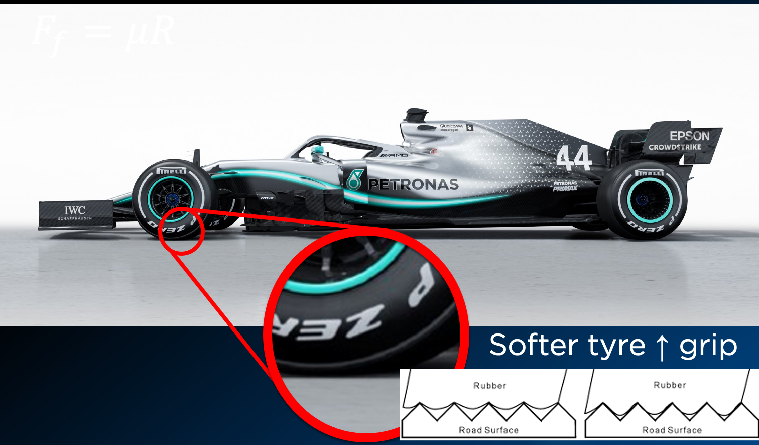Click on the picture where we see the detail of the INTERACTION between the tyre and the. road surface.