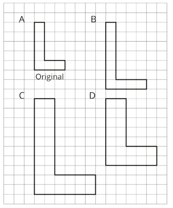 B is the scaled copy of A. What is the scale factor of the scaled figure? (must be in fraction form!)A B