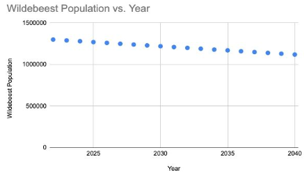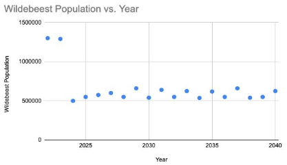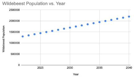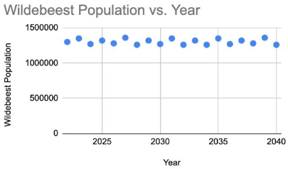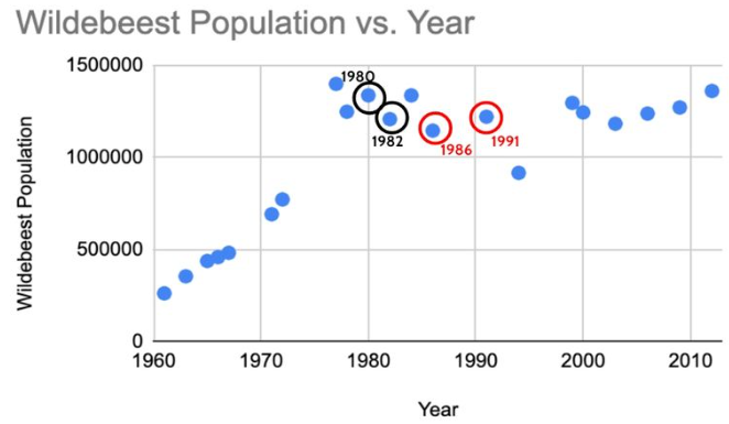 The graph shows the migratory wildebeest population from 1890 - 2010.