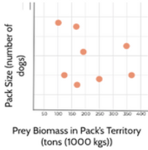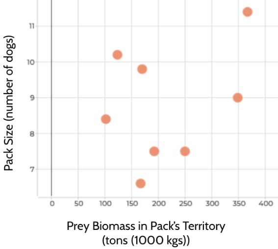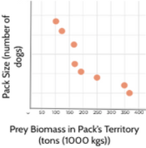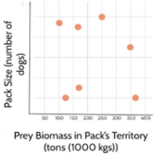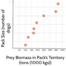 In South Africa, scientists observed the following relationship between prey biomass and dog pack size.