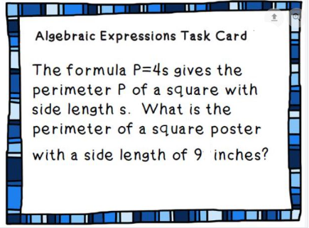 Use the formula for finding the perimeter of a poster with a side length of 9inches.