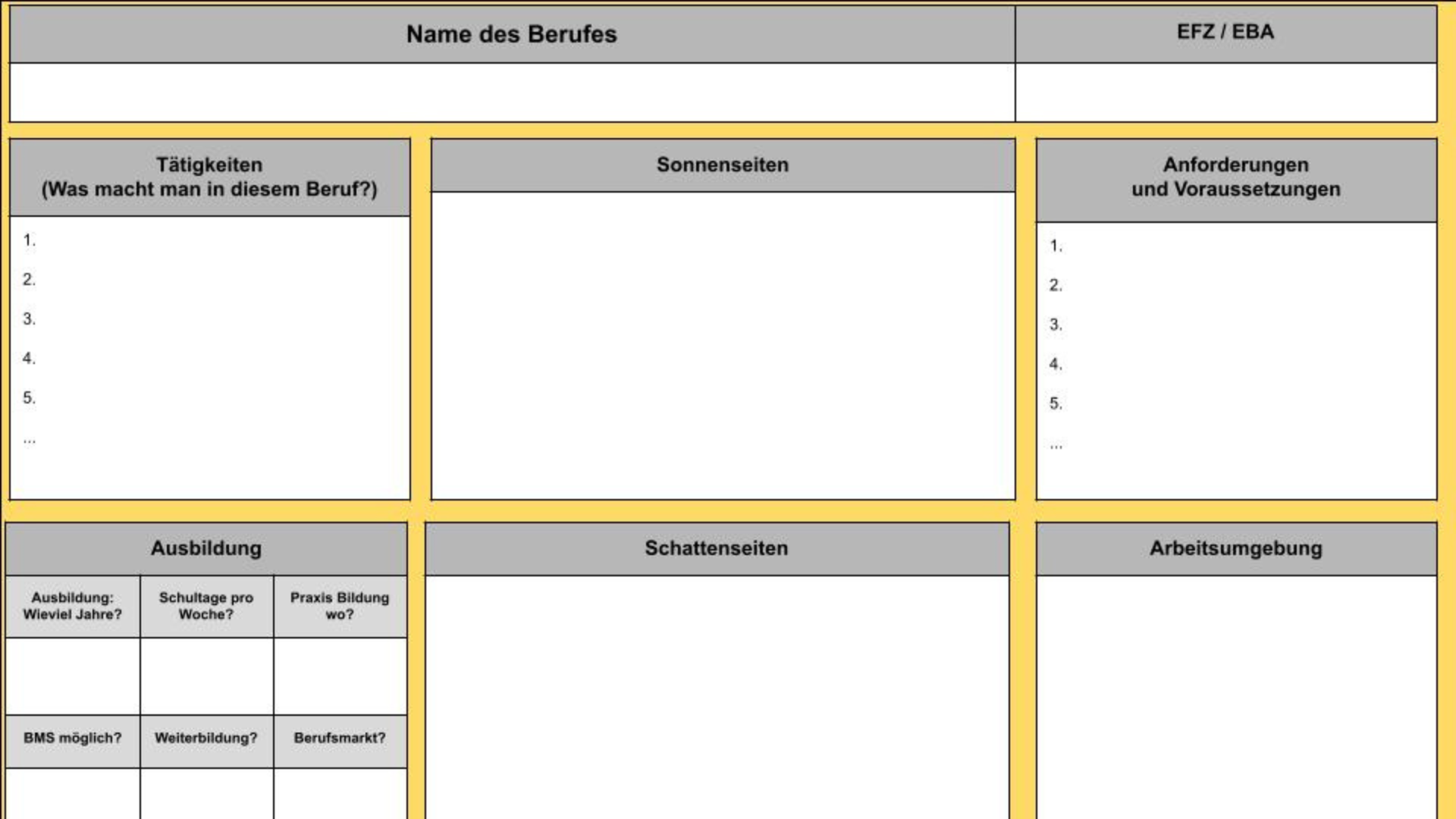✒️ Fülle Anhand der Seite das Arbeitsblatt 8pArts Berufswahl Edition aus. (Du findest es vorne bei deiner Lehrperson)