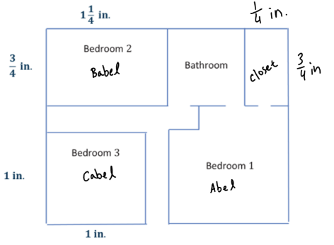 Sibling Rivalry--Abel, Babel, and Cabel are three brothers who live in a house together. 1/2 inch in the scale drawing corresponds to 6 feet in the actual home.