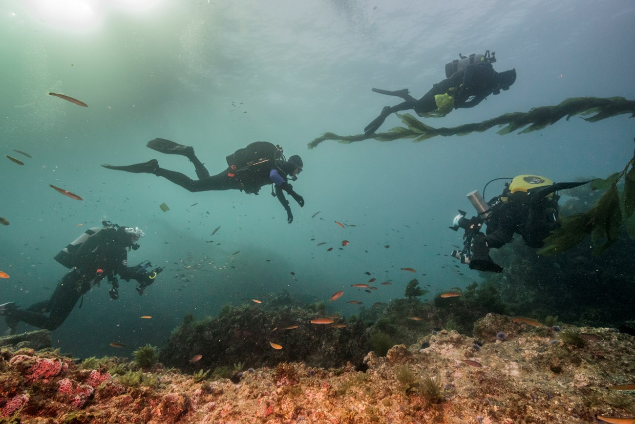 A scuba diving instructor takes a group of students to a depth of 54.96 feet. Then they ascend 22.38 feet to see some fish.