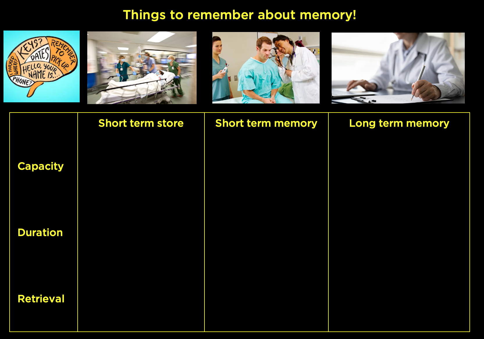 Brevity | arrow_right_alt | Storing information through repetition. Processed mentally or physically repeatedly (more likely closed skill) |