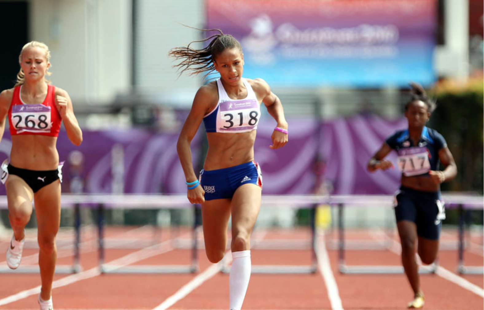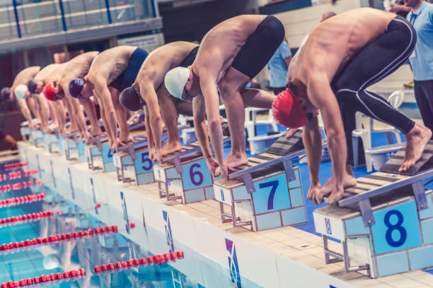 Which is an example of reaction time at the start of a 100 m swimming race?
