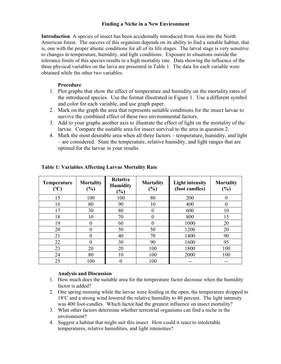 One spring morning while the larvae were feeding in the open, the temperature dropped to 18C and a strong wind lowered the relative humidity to 40 percent. The light intensity was 400 foot-candles.