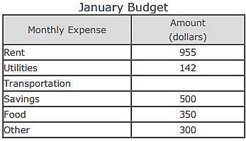 Mr. Salazar’s net income for the month of January was $2,545. The table shows his January budget except for an amount in the "Transportation" category.