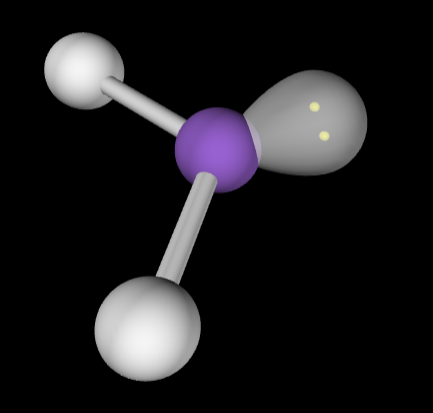 If the lone pair on this molecular model was removed, the molecule would most likely: